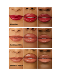 This lip gloss set comes in 3 shades: Maneater, Sunkissed Me, Sweet as Peach